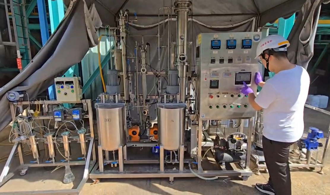 糖廠開工期間,國家原子能科技研究院以其研發的設備實地測試捕捉煙道中的二氧化碳。