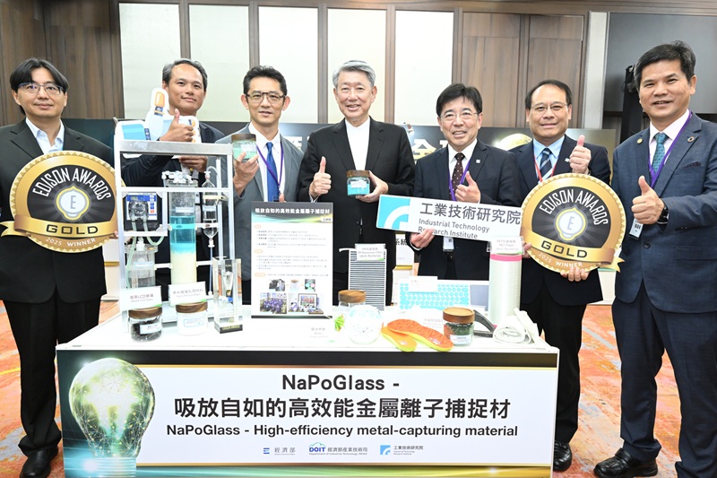 工研院共榮獲3金3銀1銅。金獎「漏水智慧監測系統」回應水資源日益緊張的挑戰。傳統管線檢測方式耗時且易受環境影響,導致漏水難以及時發現,維修成本高昂,此技術透過AI地底聲振分析,即時處理聲學數據,可快速識別與定位漏水,降低維修成本,辨識準確率達98%,並已與台灣自來水公司合作,成功定位834處漏水點,年省1,094萬噸水,有望拓展至全球缺水地區,特別適用於歐洲歷史城市,無損古蹟下精準檢測洩漏,優化水資源管理。此外,全球每年產生數十萬噸廢棄LCD玻璃與超過1,000億噸金屬廢水,傳統處理方式非掩埋即低階回收,造成資源浪費與環境汙染。金獎「NaPoGlass」同時解決兩大廢棄物問題,以專利奈米孔洞化技術製成高效能金屬離子捕捉材,應用於金屬廢水處理,金屬可回收不產生汙泥,水資源亦可循環利用並減少50%~90%用水量,相較於化學混凝沉降法,每處理1萬噸水更可減少約100噸碳排,目前已應用於半導體、電鍍業,助企業達成綠色轉型。另一項金獎技術「突破性多效能溫感水膠」是一款創新生醫材料,具高生物相容性且可被人體吸收。低溫呈液態,入體後迅速凝膠化,貼合受損組織並形成穩定保護膜,可停留患部最長30天,遠勝傳統水膠僅維持一天,大幅提升效能,並已應用於椎間盤突出與退化性關節炎等臨床試驗。目前已獲臺灣、美國、歐洲等專利,並技轉衍生新創「仁匯國際」,布局全球牙科與外科市場,立足臺灣邁向世界。