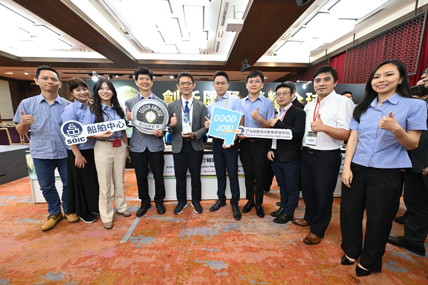 船舶中心開發「智慧航行輔助系統」獲愛迪生獎銀牌獎肯定,解決海上航行面臨的濃霧與夜間視線不良挑戰,針對傳統雷達與自動辨識系統(AIS)難以即時辨識小船、無提供直覺畫面的問題,該系統整合可見光與熱影像攝影機,實現全天候船型辨識、航行監測與風險預警等三大核心功能。目前已結合攝影機業者利凌企業、菱光科技,導入嘉信遊艇與保利馬船隻,未來將拓展至無人船應用領域,持續深化AI發展。由左至右為船舶中心組長劉哲元、船舶中心副組長陳盈儒、船舶中心副處長張歆甜、船舶中心副執行長詹明憲、船舶中心主任劉建宏、船舶中心副主任彭煜庭,以及利凌策略長許家雄、菱光科技經理陳凱萌、船舶中心專案經理陳瑞苾。